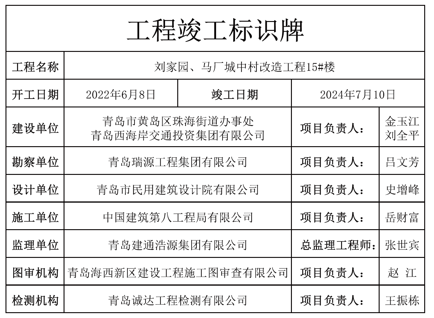 劉家園、馬廠城中村改造二期工程質量信息公示